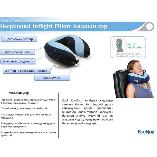 Cool Comfort хэлбэрээ хадгалдаг зөөлөвч болон Soft support дахин сайжруулсан өдийг инновацийн шийдлээр оновчтойгоор хослуулан бүтээсэн энэхүү хүзүүний дэр нь аялалын үед хүзүүнд ирэх ачааллыг багасгаж тухтай аялуулна.