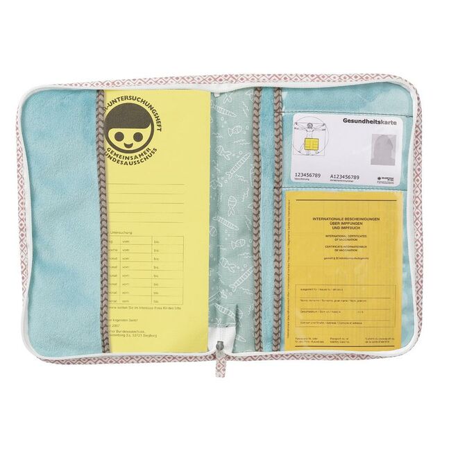 Perfect organizer for all documents: already during pregnancy the maternity log - later examination record, vaccination certificate, insurance card and more key documents of mother and baby can be placed inside the different pockets. The health card cover bear from the Bruno collection is not only an eye-catcher but also offers high stability and strength. With its practical zipper the document sleeve is easily closed and packed safely.