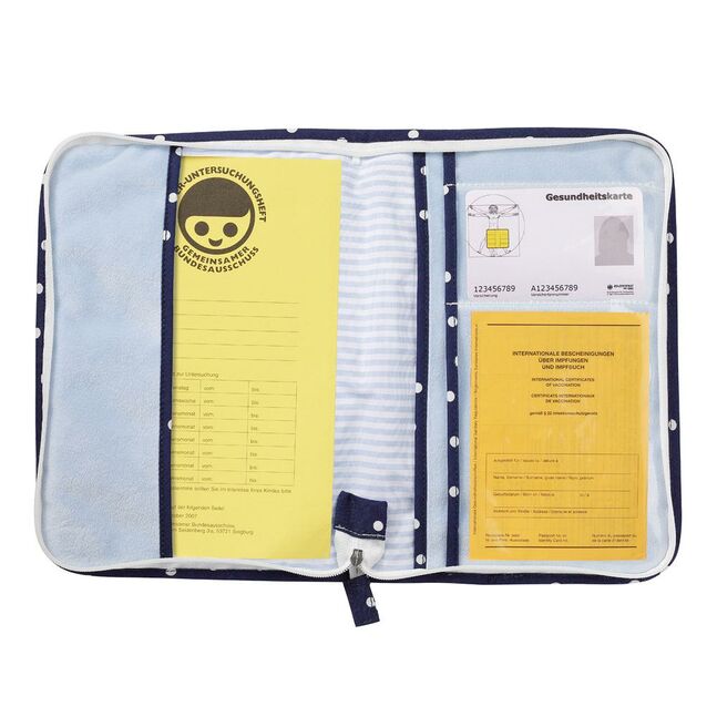 Perfect organizer for all documents: already during pregnancy the maternity log - later examination record, vaccination certificate, insurance card and more key documents of mother and baby can be placed inside the different pockets. The health card cover Ocean Club from the Classic Stars collection is not only an eye-catcher but also offers high stability and strength. With its practical zipper the document sleeve is easily closed and packed safely.