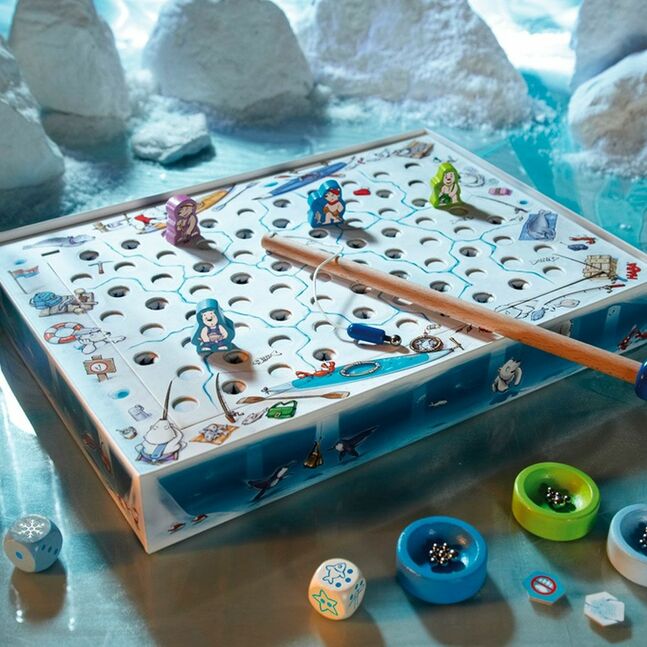 Тоглоомыг хайрцагт нь тоглоно. Тоглоомын бүх туслах хэрэглэгдэхүүнийг хайрцагнаас гаргаж, нүхтэй суурь картоныг үлдээгээрэй. Бүх загаснуудыг (= том ба жижиг ган бөмбөлөгүүд) хайрцагт хий. Тоглоомын тавцангийн нүхтэй дотор хэсгийг хайрцагт хийхдээ, талуудыг нь тааруулан хийгээрэй. Нүхтэй хэсэг дээрээ нэг цагаан цаас тавина: энэ нь хожим тоглоомын явцад загас барихын тулд, нүхлэх ёстой мөсөн давхарга юм. Ингээд тоглоомын тавцангийн дээд талын хэсгийг дээр нь тавиарай. Хайрцгийг ийш тийш нь хөдөлгөөрэй: ингэснээр загаснууд нь нүхнүүдэд тарна. Зарим нүх бөмбөлөггүй, харин зарим нүхэнд хэд хэдэн бөмбөлөг байх тохиолдол байна.