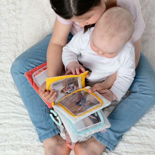 Discover, explore and feel: with the plush photo album babies playfully remember faces and learn names, for babies and toddlers 0+