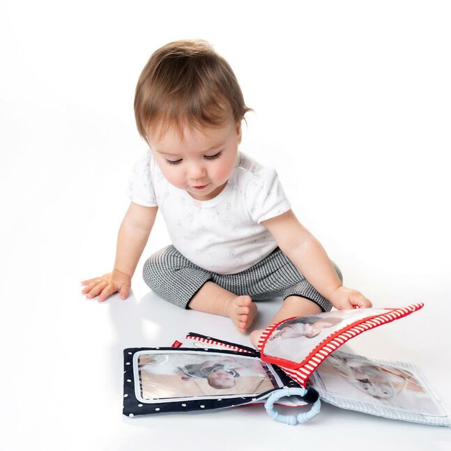 Discover, explore and feel: with the plush photo album babies playfully remember faces and learn names, for babies and toddlers 0+