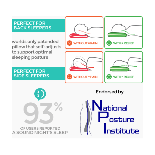 BackJoy-ын SleepSound ™ дэр нь таныг унтах үед өөрөө хамгийн зөв тохиромжтой байрлалд орж шөнийн турш амгалан нойрсоход туслах дэлхийн цорын ганц патентлагдсан дэр юм.